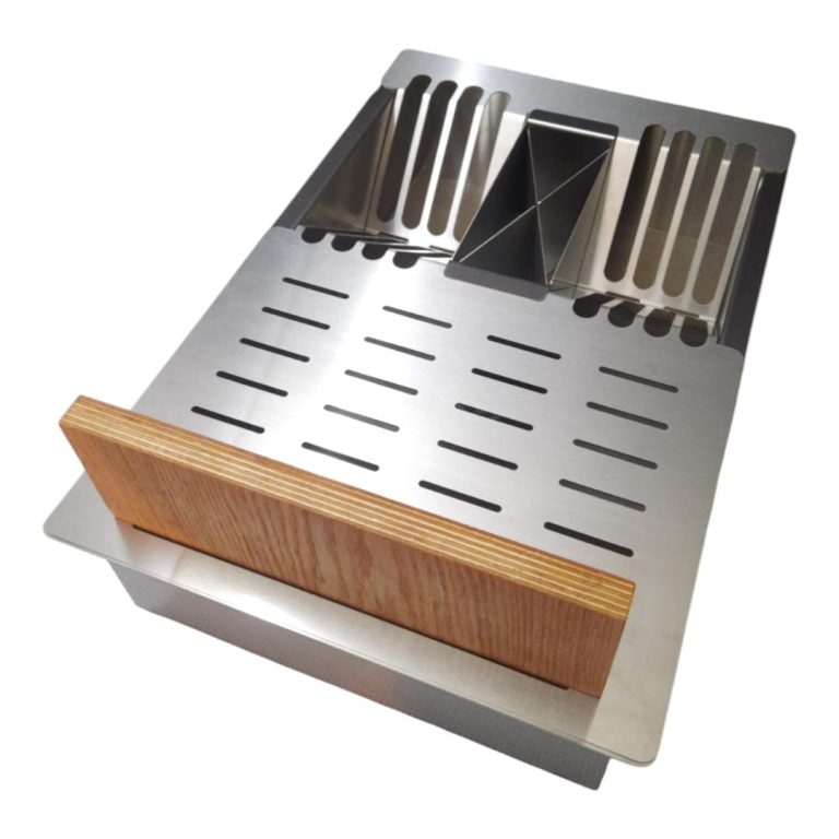 معرفی آبچکان توکار سایز ۴۵ /۳۰  ارتفاع ۱۰ رنگ‌ استیل به همراه تخته برش